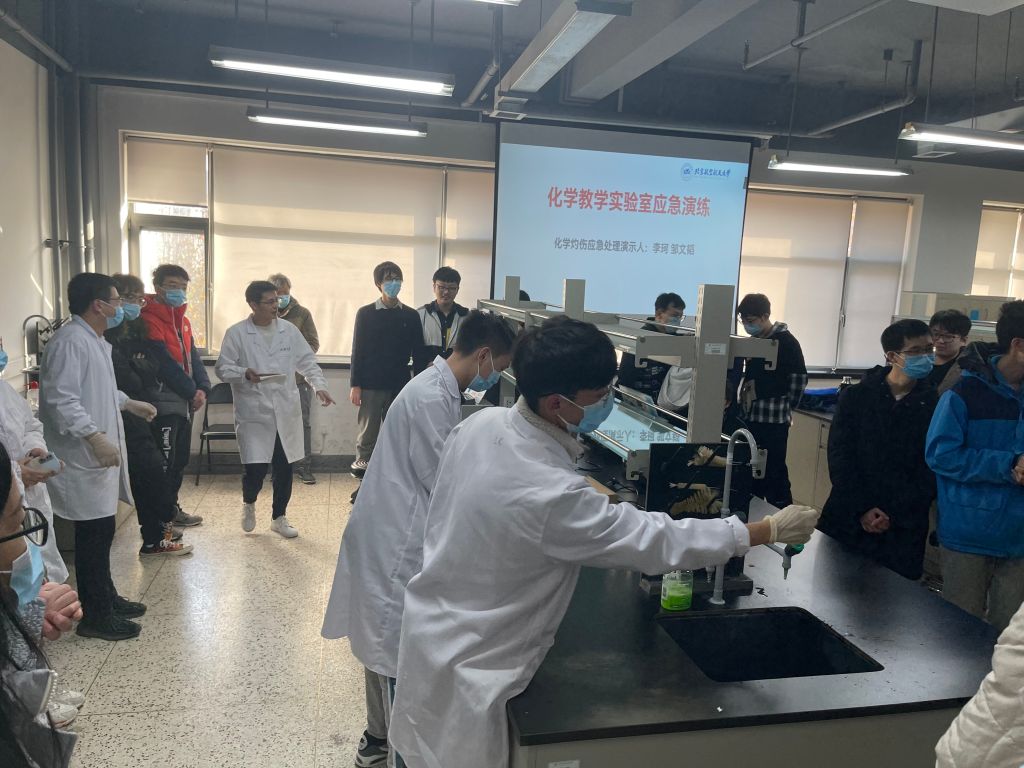 为了进一步加强公司安全工作,增强化学实验教学中心师生安全意识,提高员工对实验安全应急处置能力,本着坚持“安全第一,预防为主”的方针和“以人为本”的思想,2021年11月24日化学实验教学中心(平台)在实验楼1号楼301室进行了实验室安全培训及应急演练。中心全体实验室负责教师和2018级本科生(2022年毕业班)及10余名博、硕士研究生等50余人参加了本次演练。