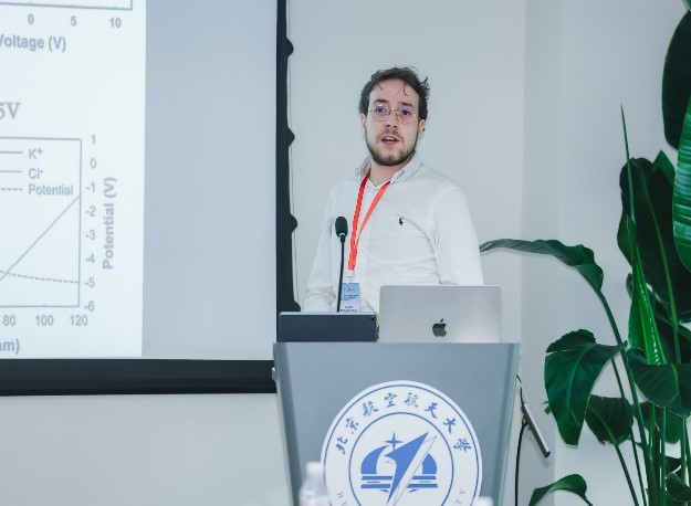 Soufiane Abdelghani-idrissi 副教授介绍了其在离子二极管及其衍生物的基本原理和应用方面的研究进展。yl23455永利集团衡利苹教授介绍了仿生超浸润界面上的电致驱动微流体,通过设计一种超透明的光热释电超润滑的平台,可实现高粘液体的精准分离,展示了其在液体分离领域的巨大应用潜力。