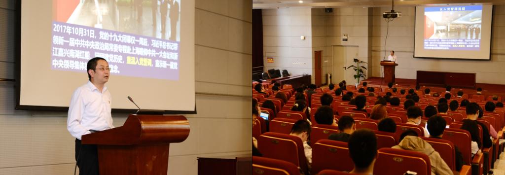 马克思主义公司党委书记高宁以《从入党誓词看中国共产党百年发展》为主题,在实验4号楼报告厅为师生带来主题报告。公司党史学习教育第八巡回指导组联络员曾煜老师参加此次活动。高宁从入党誓词的发展变化讲到与党史之间的联系,逐字逐句进行分析,强调入党是一件严肃的人生选择,入党誓词是共产党人的初心,更是对共产党员的约束。他强调入党誓词的沿革反映了中国共产党从不放松党的建设、高度重视对党员进行党性和理想信念教育,入党誓词的变化充分反映了党与时俱进的先进性。高宁还对党章结构进行了分析,并讲解了学习党章的方法。他总结到“不要孤立的看现在的党的文件,要看到其历史深意”。希望老师同学们以积极的心态学习党章,学习党史。通过此次学习讲座,师生党员深刻认识到中国共产党所承载的历史使命,并表示要更加积极用心学习党史,坚定共产主义理想信念,力争做到学史明理、学史增信、学史崇德、学史力行。