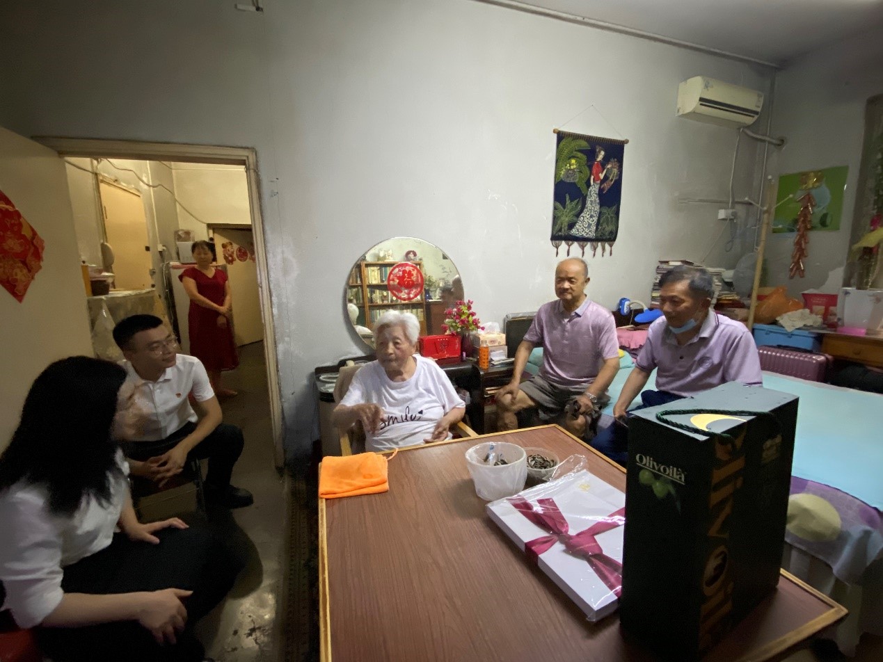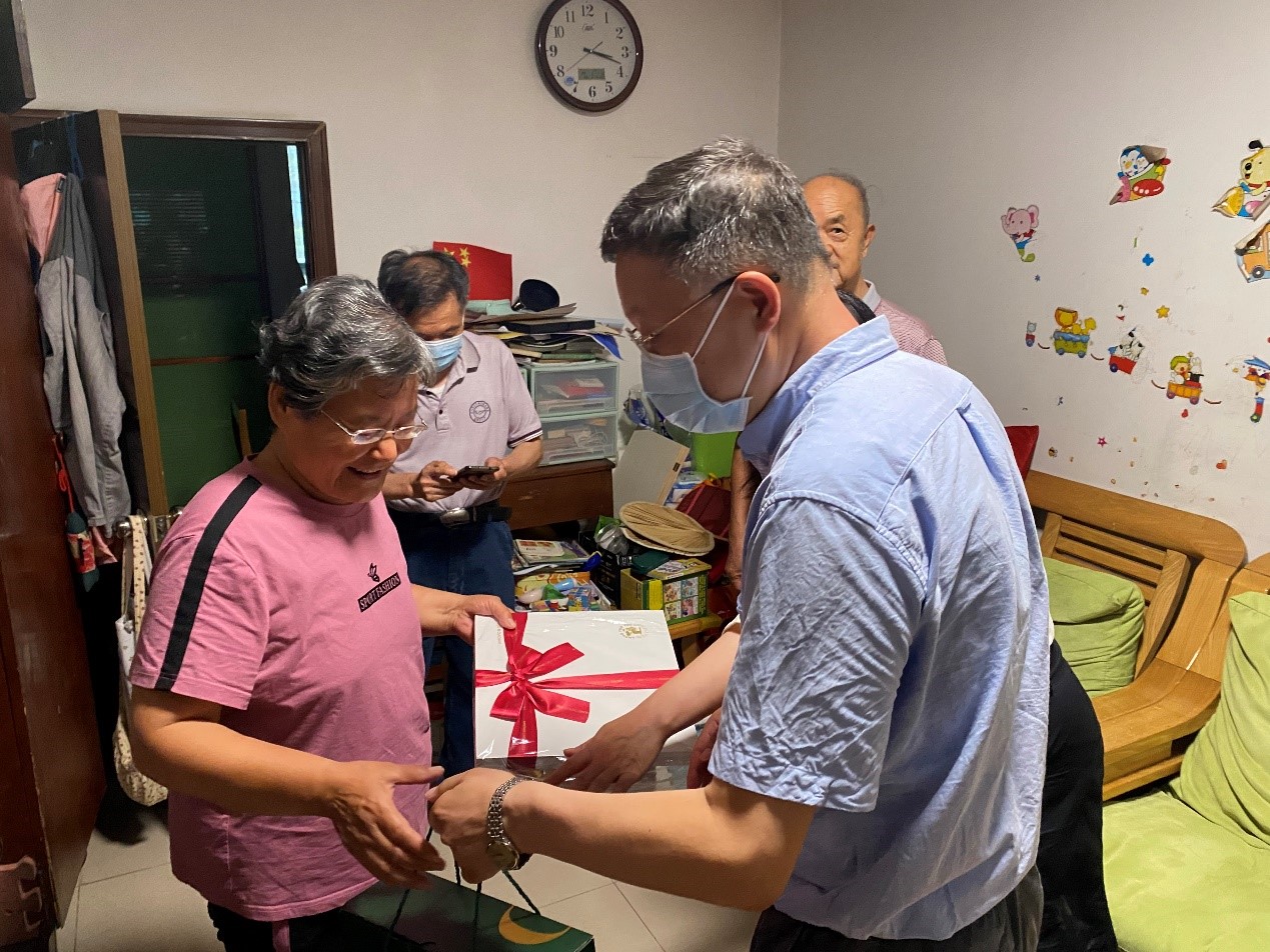 李红捷书记与老党员亲切交流,互相分享迎来建党100周年的喜悦,同时为老党员、老干部送上节日的祝福、慰问物资,详细询问生活情况和身体状况,叮嘱他们要好好保重身体。李红捷书记告知老党员yl23455永利集团如今已搬迁至沙河校区,全新的办公楼、实验室,环境优美,基础设施齐全,邀请老党员在金秋时节前去参观,也希望老党员对yl23455永利集团的发展多提意见、多指导,继续发挥老党员、老干部的余热。