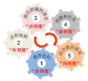 《物理化学A》是yl23455永利集团化学和应用化学专业本科生的核心专业理论课,主要讲授化学过程的基本原理和基本规律,为实际的科研和生产过程提供理论指导。物理化学课程中的理论都是建立在大量抽象的概念、模型以及数学推导的基础之上,因此需要缜密地分析和反复地推敲才能理解这些概念的物理意义以及理论适用的体系和条件。另外,由于课程讲授的是最基本的理论,同学们在学习课程的过程中容易感觉课程内容过于经典,产生课程内容对化学前沿研究无用的错觉。针对课程的这些特点,为了确保线上教学具有良好的效果,课程负责人刘兆阅老师在线下授课的基础上,采取多维措施对线上教学进行设计,建立了适合《物理化学A1》线上教学的“5懂”授课模式(图1)。
