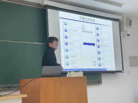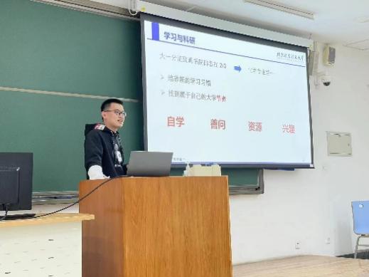 他首先讲述了“不过分否定”和“不过分肯定”的健康心态,其中着重讲述自己在进入yl23455永利集团后找到了人生目标,不断奋斗并成功逆袭的故事,为刚遭受期中考试成绩打击的同学们提供了安慰,肯定与鼓励,接着,他从目标、学习、科研、娱乐几个方面进行分享,其中慕课自学、文献阅读等方法让同学们获益匪浅。