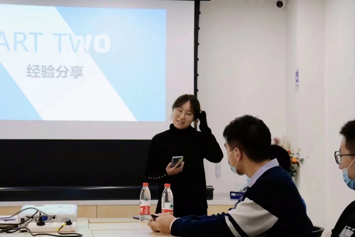 接着,由张诗婉学姐为同学们分享学习经验。在无机化学学习方面,她提出要加强对于讨论题的理解和复习,在考前要完整复习讨论题的所有要点;针对计算题可以进行额外的练习。在数学分析方面,她提到可以在考前去打印店购买往年的真题进行练习,加深对于题目类型和知识的理解。在时间管理方面,她说可以利用整块的时间去教室或自习室进行学习,提高学习效率。在科研方面,她提到可以在自己空闲的时间前往实验室做实验,把握好开反应和上课的时间安排。