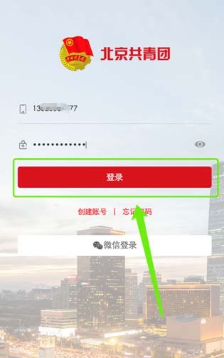 用户通过“青春北京”菜单栏进入系统后,点击“我的”按钮,出现登录页面。