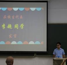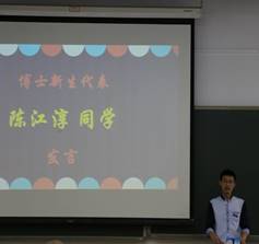 随后,在三位员工代表发言环节,2019级硕士新生代表罗翌飞同学总结了自己在本科期间做科研的体会。2019级博士新生代表陈江淳同学则告诉大家对于科研,不仅要有脚踏实地的态度,也要有敢为人先的胆识。而2017级博士李超同学作为在校生代表,则给出了科研路上的中肯建议:一定要把发现、解决问题的能力培养起来。