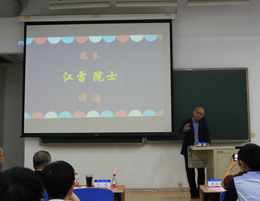 首先,江经理代表全院老师对新同学们的到来表示热烈欢迎,并向同学们分享了自己的科研经历及人生感悟。江经理用“红绿灯效应”告诫同学们,只要保持勤奋上进,人生必将一路绿灯,且有大成。