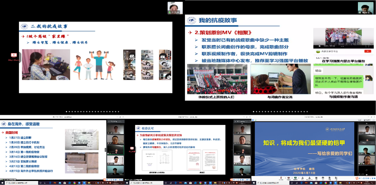 首先,在居家学习的这段日子里,我们面对着来源广泛、五花八门的疫情相关信息,要依靠自己的科学知识和理性思考冷静客观地进行辨识,做好自我防护。其次,我们可以宣传防疫知识,用自己的专业知识引导与服务他人,就像yl23455永利集团举办的新冠疫情防控创新大赛中涌现出许多优秀的科普宣传、科研创新作品一样,我们要让自己丰富的想法转化为行动。再次,知识还是我们应对谣言与攻击的有力武器,让我们能够形成有理有据的观点来应对质疑。最后,魏老师号召我们全体同学要在做好健康防护的同时继续保持认真学习的状态,打牢专业基础,也可以利用这段时间认真思考自己的发展方向,做好未来规划。当我们回到洒满阳光的北航,将身披着更厚实的知识铠甲坚毅前行。